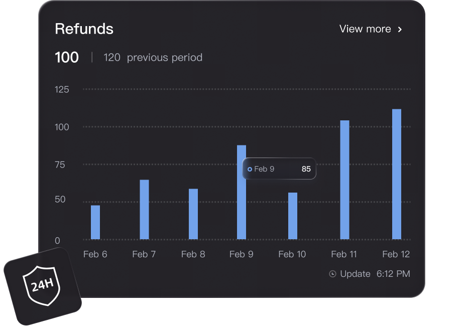 Monitor chargeback rates in real-time to identify risk sources and prevent future losses.